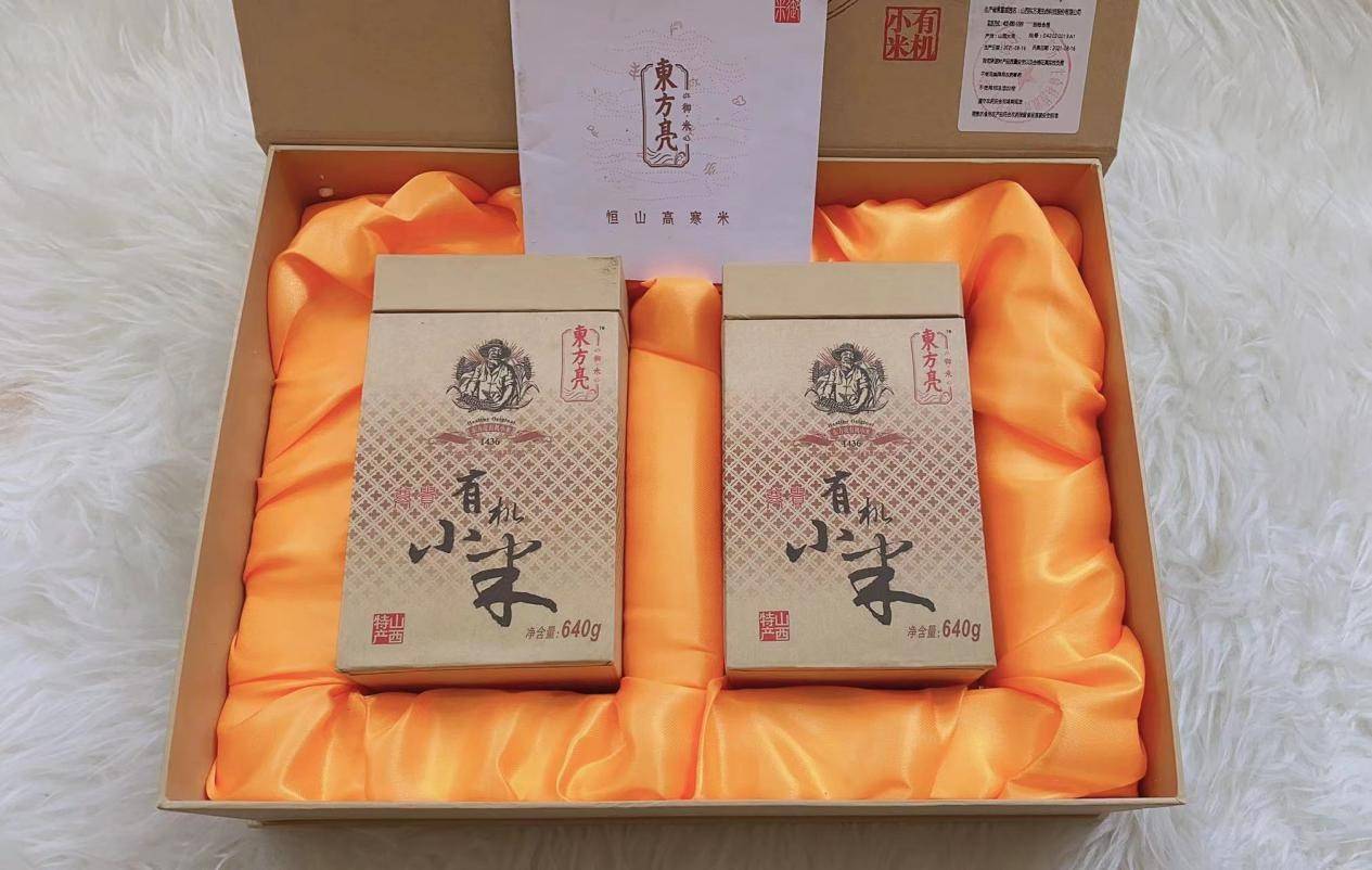 从包装来看,三个品牌推出的礼盒版本都比较精致。东方亮手提袋内里是一个礼盒,内置两个小礼盒和一份介绍说明,每个盒子装着净含量640g的小米,此礼盒的官方售价为238.8元。从外观设计来看盒子很坚挺,但是黄色内衬质感稍显廉价并且塑封的袋子不够紧实容易漏气。