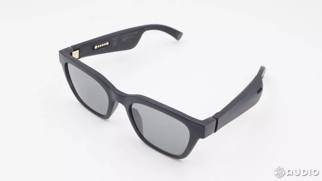 Bose智能音频眼镜外观与普通太阳镜并无太大差异,但设计上更潮流简约,镜片可更换,转轴部分又为镀金材质,整体式样给人时尚高端的感觉。但毕竟内置了主板和电池等零部件,重量较重,持续佩戴略显累人。