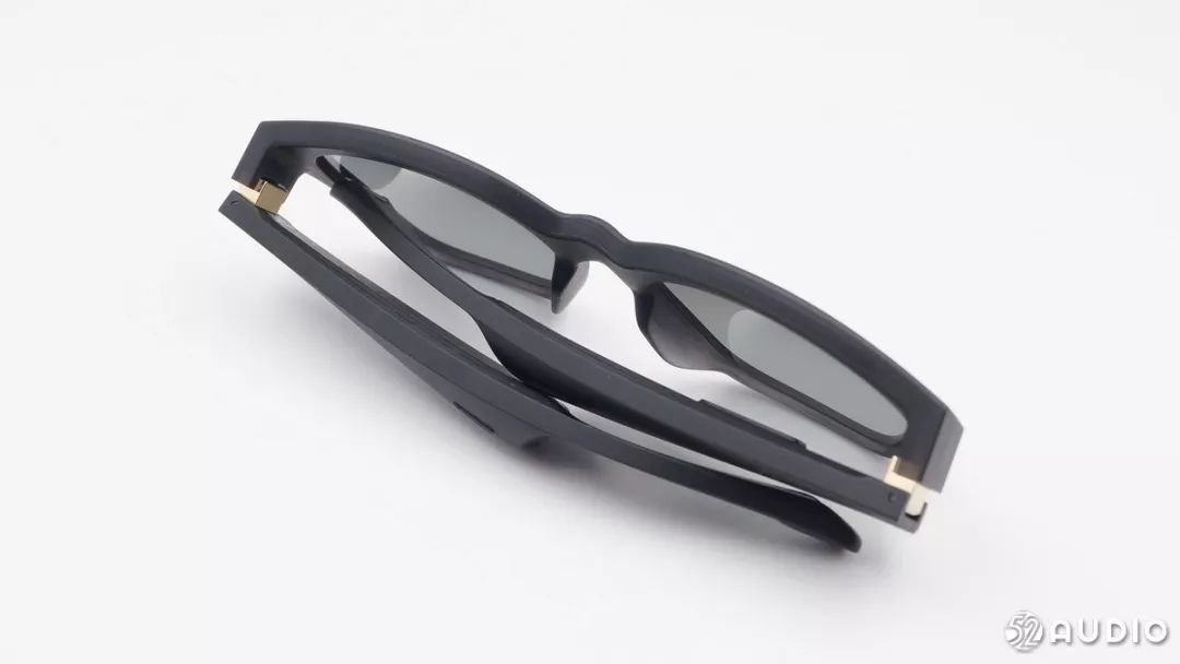 俯观眼镜,可以看到眼镜的侧边支架相对正常眼镜要更宽大。