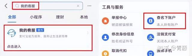 打开支付宝搜索“我的客服”>>点击进入>>查名下账户