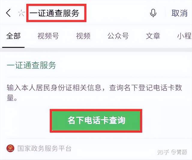 在微信搜一搜里搜索“一证通查服务”,然后点击“名下电话卡查询”。