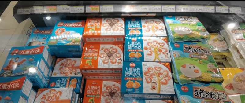 像肖女士这样的家长并不少,看到“儿童”字样或者图像,就会加入购物车。记者在一家超市的冷冻食品区看到,一位市民就一下子买了三袋某品牌的“儿童成长营养水饺”。