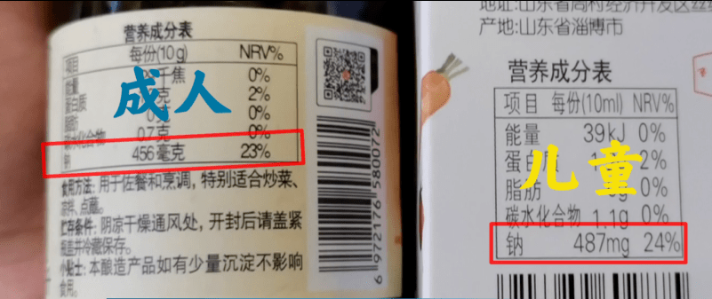 记者在商场的一款儿童酱油上看到,产品配料为水、大豆、小麦、食用盐等,与普通酱油并无不同,甚至钠含量比普通酱油还高,一瓶23.9元的价格,比普通酱油高出近5倍。