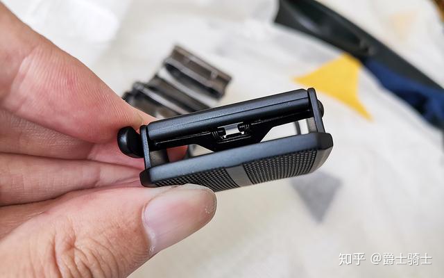 带扣的尾夹开启很方便,不用工具即可轻松开合,而且上面的一排的锯齿,能够稳固的夹持皮带,同时也方便自主更换带扣以及裁剪皮带的长度。