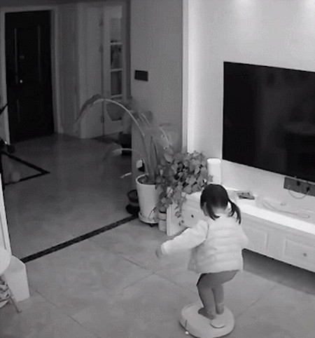 同样的,对于宝宝而言,扫地机无疑也成为了她的“新坐骑”。瞧,这个坐骑多酷啊!