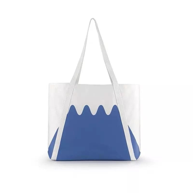 拿到手后意外的实用,里面有个小袋,外面还有一个暗袋,两侧有扣,可以解决帆布袋没有拉链总敞着的问题最最重要的是,当两侧扣起向内叠,帆布袋只留蓝色的部分,看起来就真是一座富士山?。非要说缺点的话,两根带子不太受力,可以封边做的再好一些。