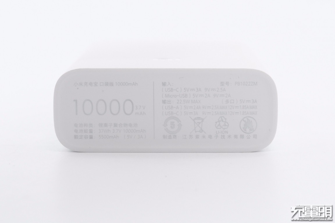一、小米口袋版10000mAh移动电源外观
