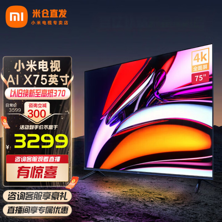 参考价格:65英寸2999元;75英寸4299元!到手价高于该价格可以等等活动再买!