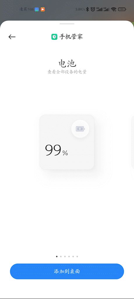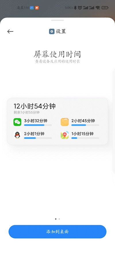 点击下方的“添加到桌面”,这一小部件就会以卡片的形式被添加到桌面,都是圆角化矩形块的设计,而且被添加到桌面还会有动画效果,就像下图这样。