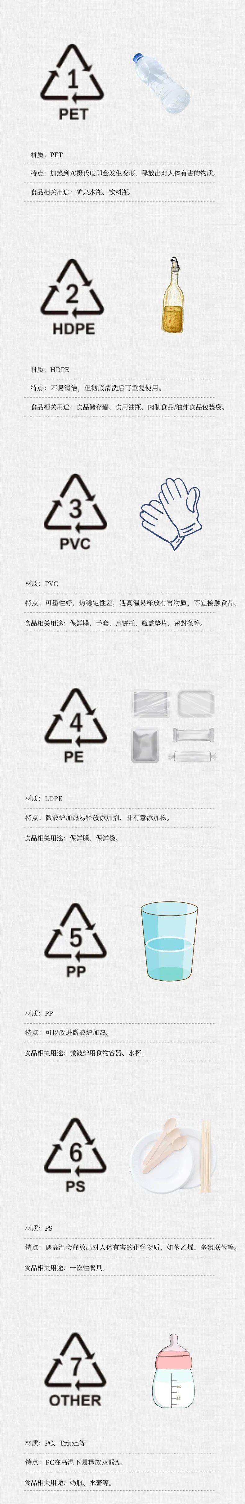 另外,塑料餐具上有7个数字,代表不同的塑料材质,也表明它们适用于不同的场景。