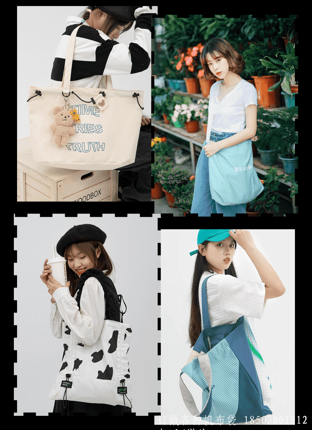 比如不同色系拼接包带、双背带、抽绳等不起眼的设计,让环保袋没那么无聊,也不怕烂大街